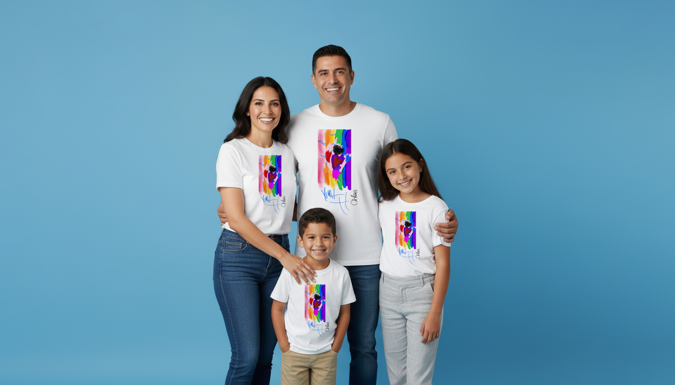 Through her artwork and T-shirt designs, Chloe shares her world — one filled with color, joy, and imagination — and hopes to spread a little color and a lot of joy to the world.